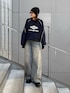 may(Lui's EC)のデニムパンツ「切替デザインワイドデニムパンツ」を使ったコーディネート