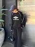 ◼︎ UMBRO×Lui's パイピングロゴスウェット / Sサイズ着用 大人気のコラボアイテムUMBRO×Lui's フロントと、袖口と、後ろについたUMBROのロゴがアクセントに♡ サイズ感も程よくゆったりめで大きすぎないので、スラックスで綺麗に合わせても可愛いし デニムやスウェットパンツとのカジュアルな組み合わせもオススメです◎