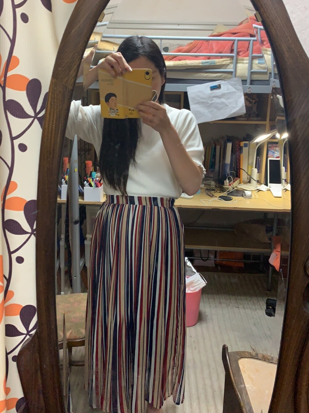 本日のコーデ 上下しまむらのコスパ最強セット! 私はブルベ冬なので、このスカートのような色味がとても合うし好きでよく使います!