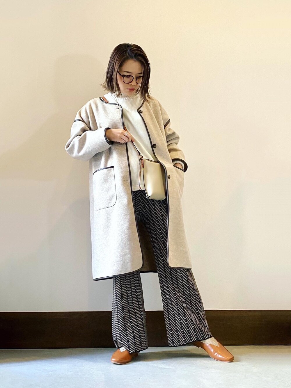 𝓜𝓮𝓲❣︎ のノーカラーコート「ノーカラーパイピング/オーバーコート」を使ったコーディネート