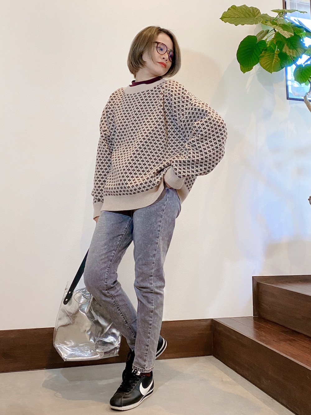 𝓜𝓮𝓲❣︎ のカーディガン/ボレロ「レトロな気分。2way配色ジャガードオーバーサイズニットカーデ」を使ったコーディネート