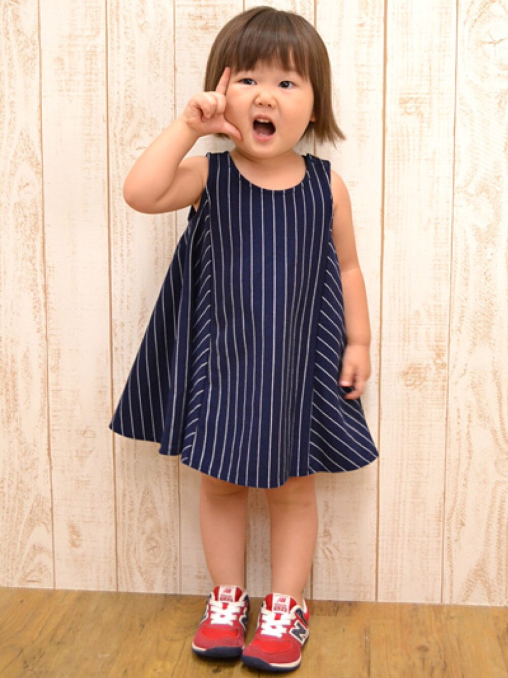 ムーピーキッズコーデ。 ストライプのワンピはカジュアルにもフォーマルにも使える♪ 2000円には見えない!