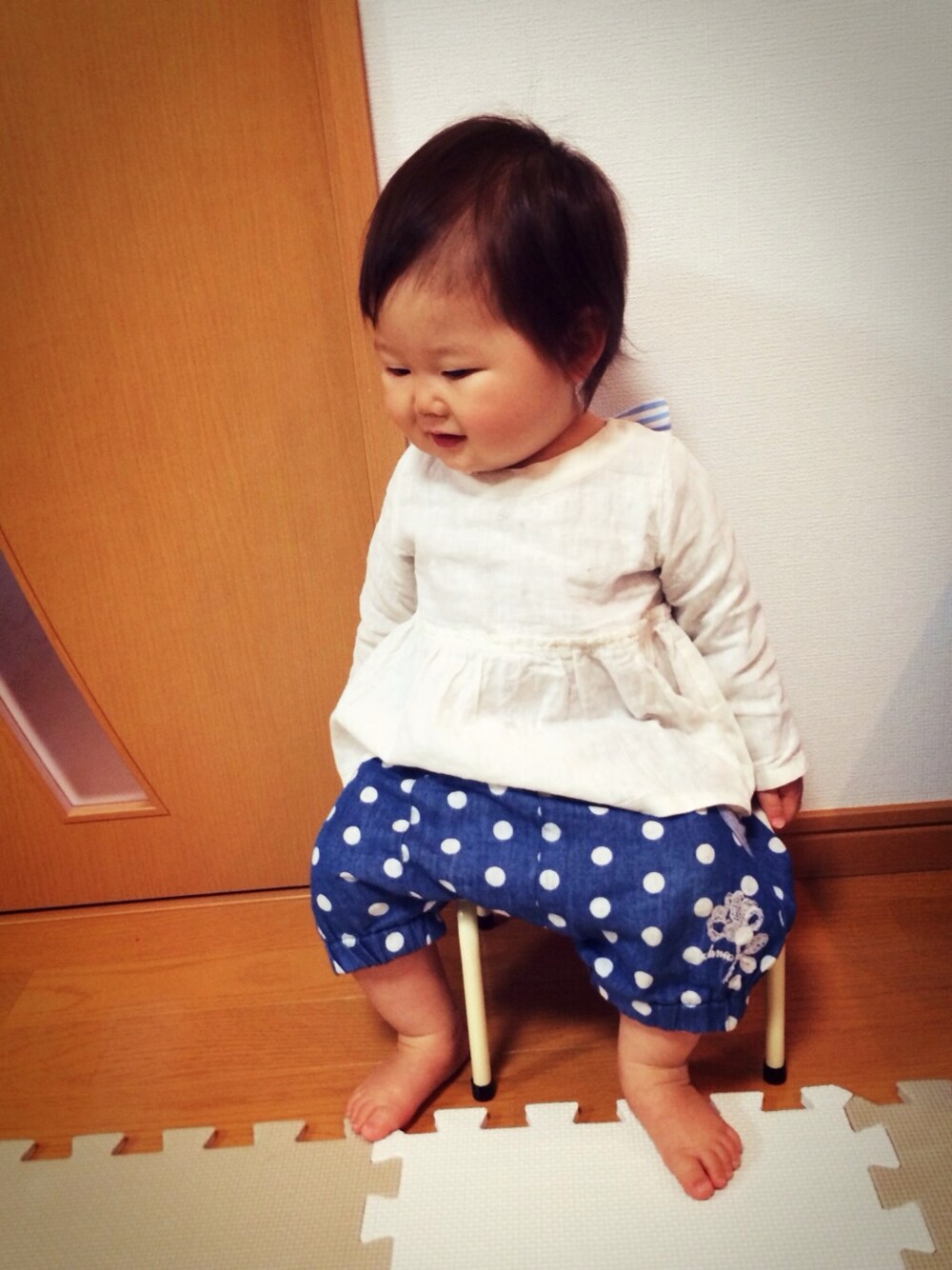 チュニック:ハンドメイド サルエルパンツ:スネー ママ手作りのチュニックとドットサルエルのコーデ。見えないけど、後ろのリボンがポイント。