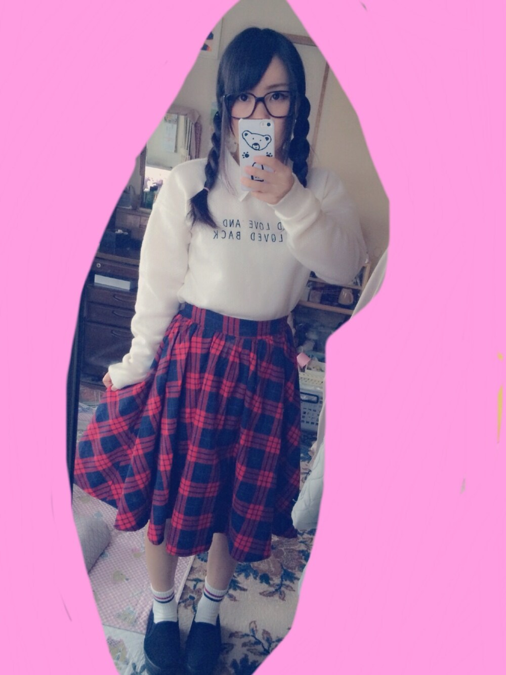 チェックスカートと 襟付きトップスʕ•ᴥ•ʔ