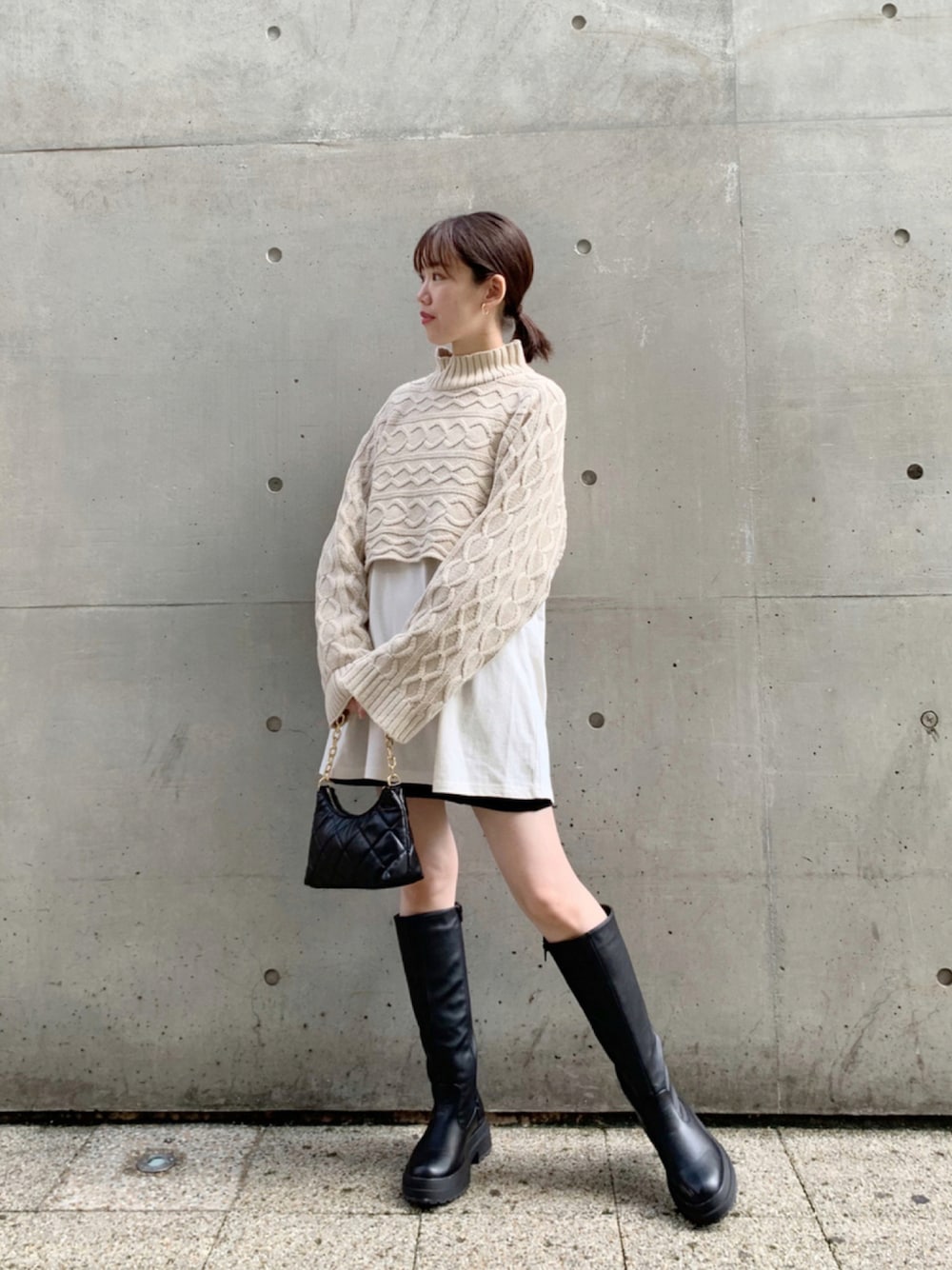 mayuko (きたまゆ)(Chico HEPFIVE店)のニット/セーター「ハイネックショート丈ケーブルニット+ロンTSET」を使ったコーディネート