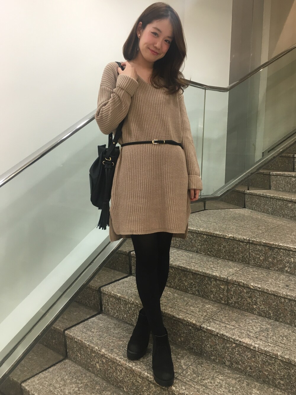 mayuko (きたまゆ)のワンピース「【who's who Chico】Vネック片畦ニットワンピースセット」を使ったコーディネート