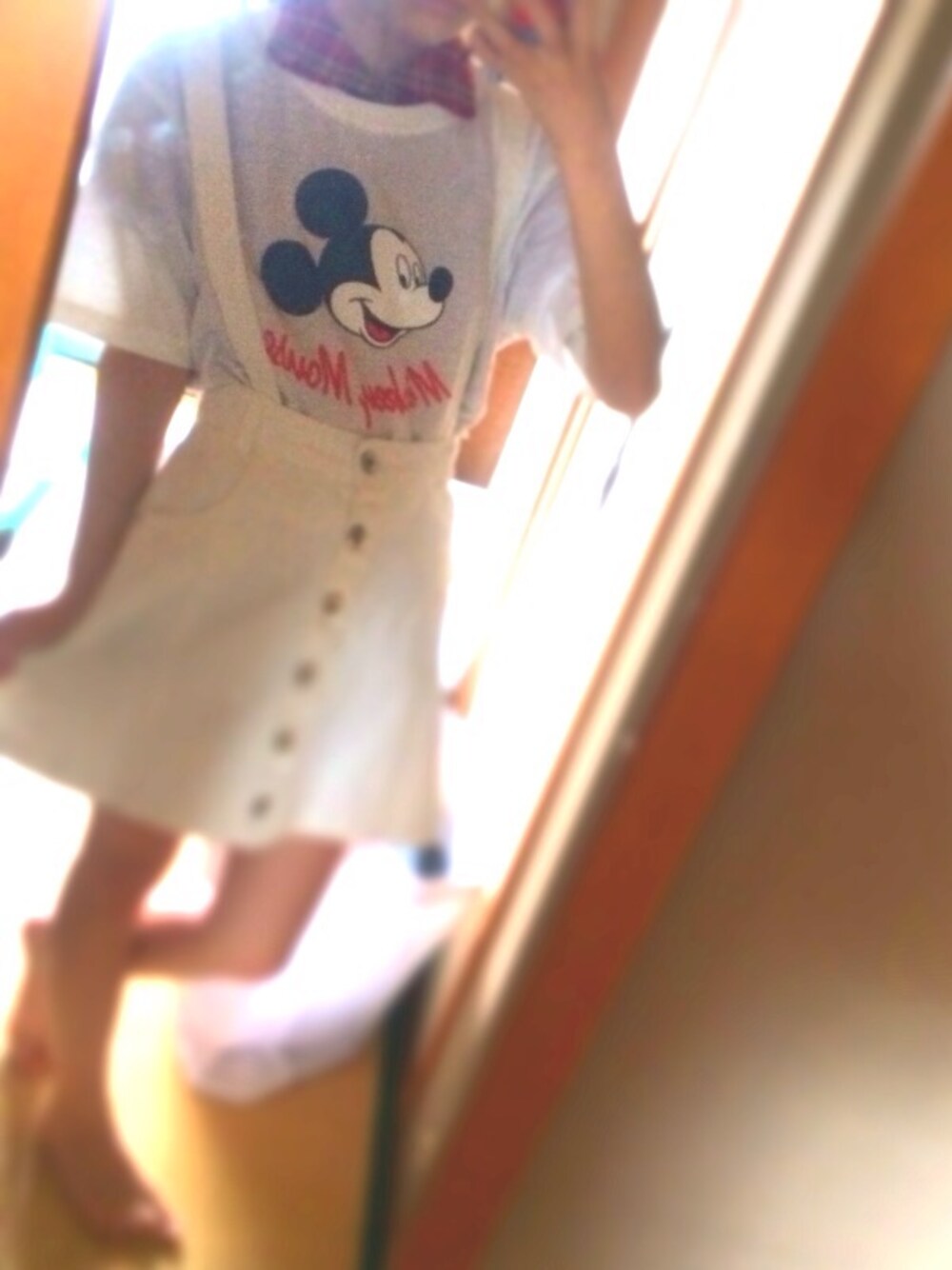 wegoのみっきーTシャツにINGNIのタイトサスペ付