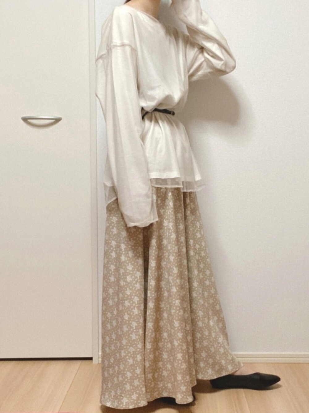 Ⓜ︎のスカート「フラワープリントマキシスカート」を使ったコーディネート