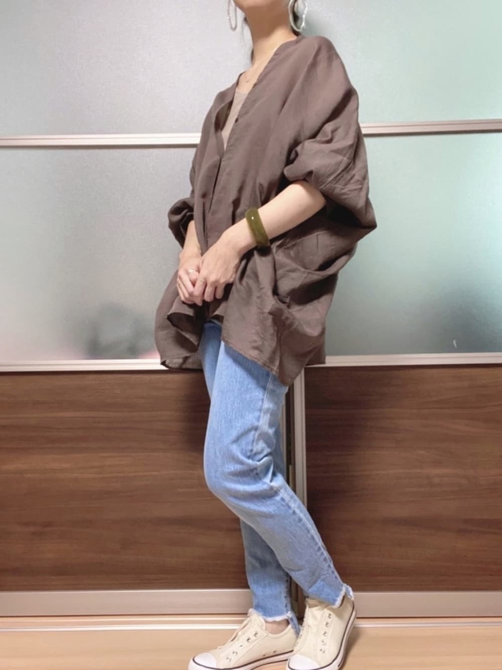 Ⓜ︎のシャツ/ブラウス「コットンシルクドルマンシャツ【手洗い可能】◆」を使ったコーディネート