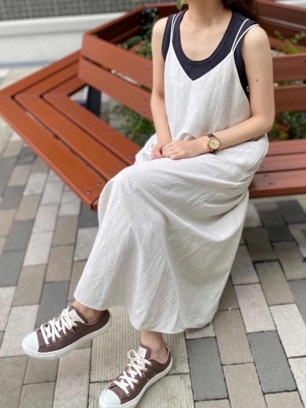 今日のコーデ🖤🤍🤎 ご覧いただきありがとうございます◡̈! いいね フォロー ありがとうございます😊 今日は、シップスのキャミワンピースの着回しコーデです!! 秋服投稿多い中、タンクトップで 笑 色は、秋を意識してෆ*ෆ*ෆ*