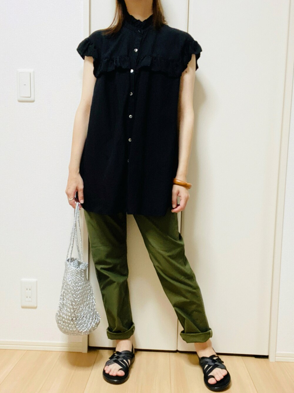 なつコーデ🌻 また、イロチで購入しちゃったパンツ。 秋まではけそうな、綺麗なカーキ色♡