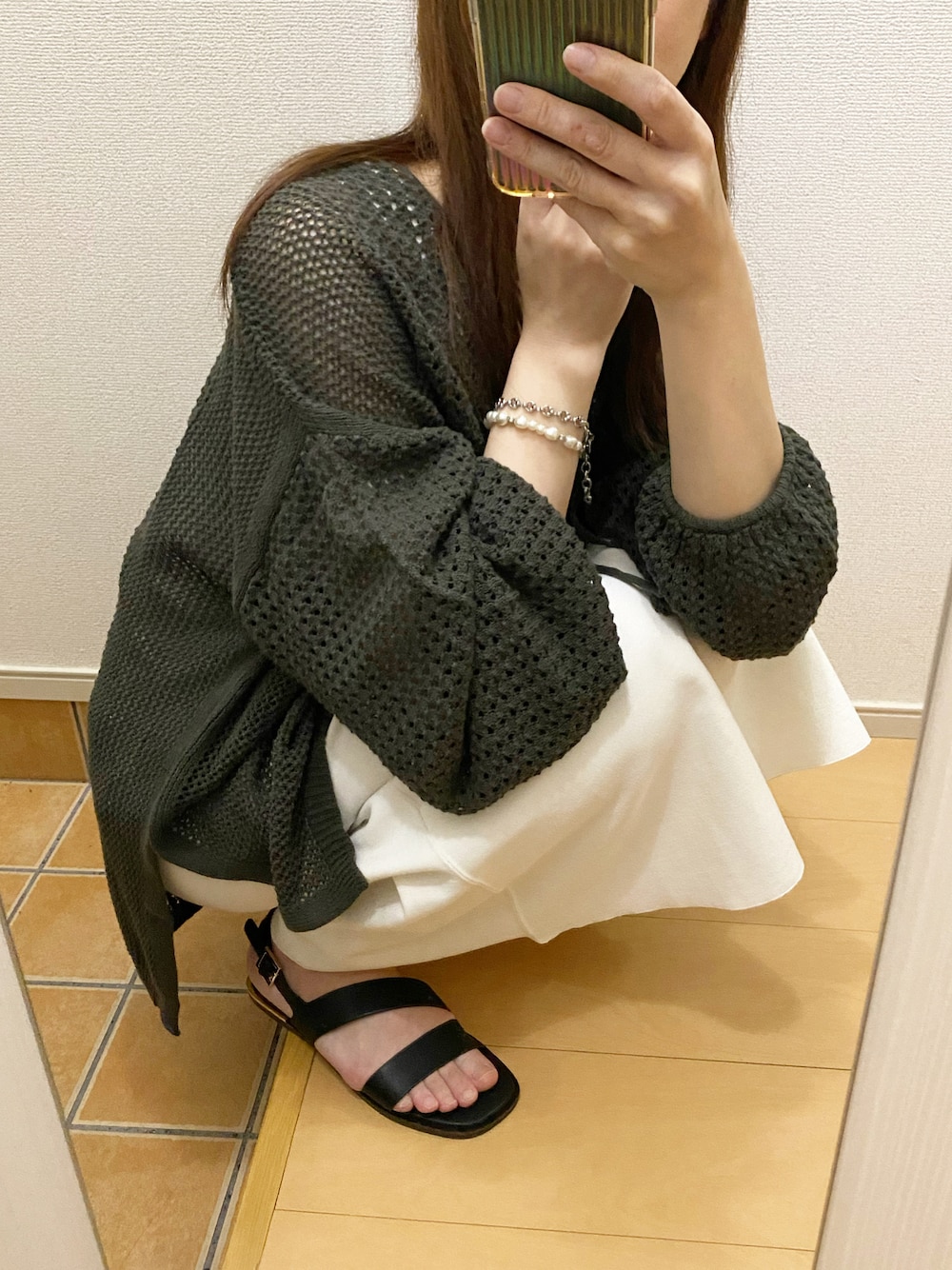 Ⓜ︎のニット/セーター「[ご好評につき新色追加!]コットンメッシュ透かし編みニットプルオーバー」を使ったコーディネート