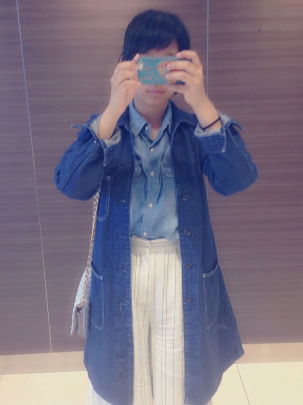 早く暖かくなってほしいなあ こういう服早く着たいな シャツもコートもデニム生地だけど色が違うといい感じになる😄