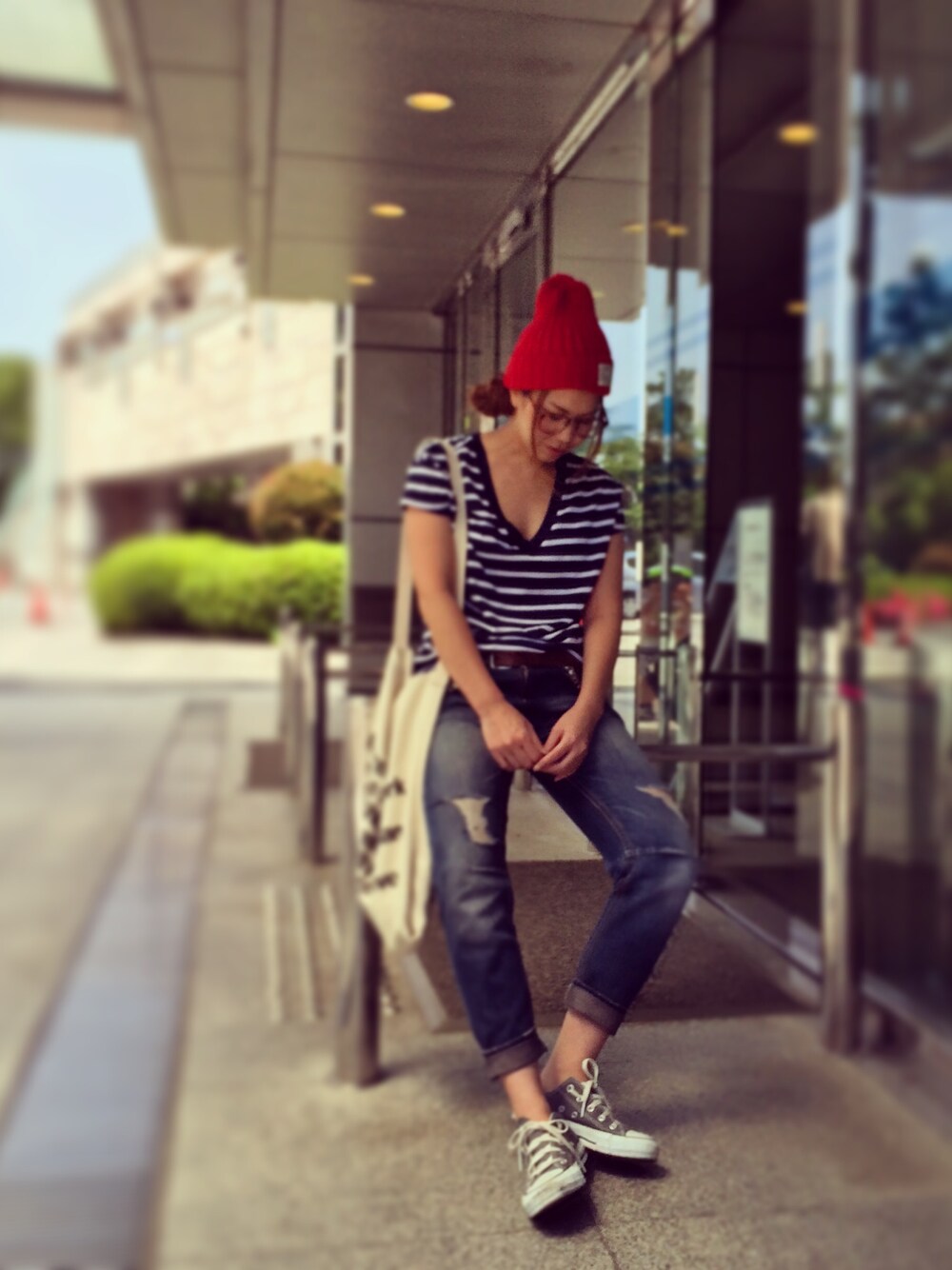 Tシャツ:ZARA ニットキャップビーニー:ブランド不明 ベルト:ブランド不明 今日も普通のカジュアル。