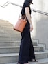 持っているバッグは ツツII ミニショルダーバケットバッグ #タン ブラックのワントーンコーデの差し色に🍊 Epoi staff Instagram ≫ @epoi_staff