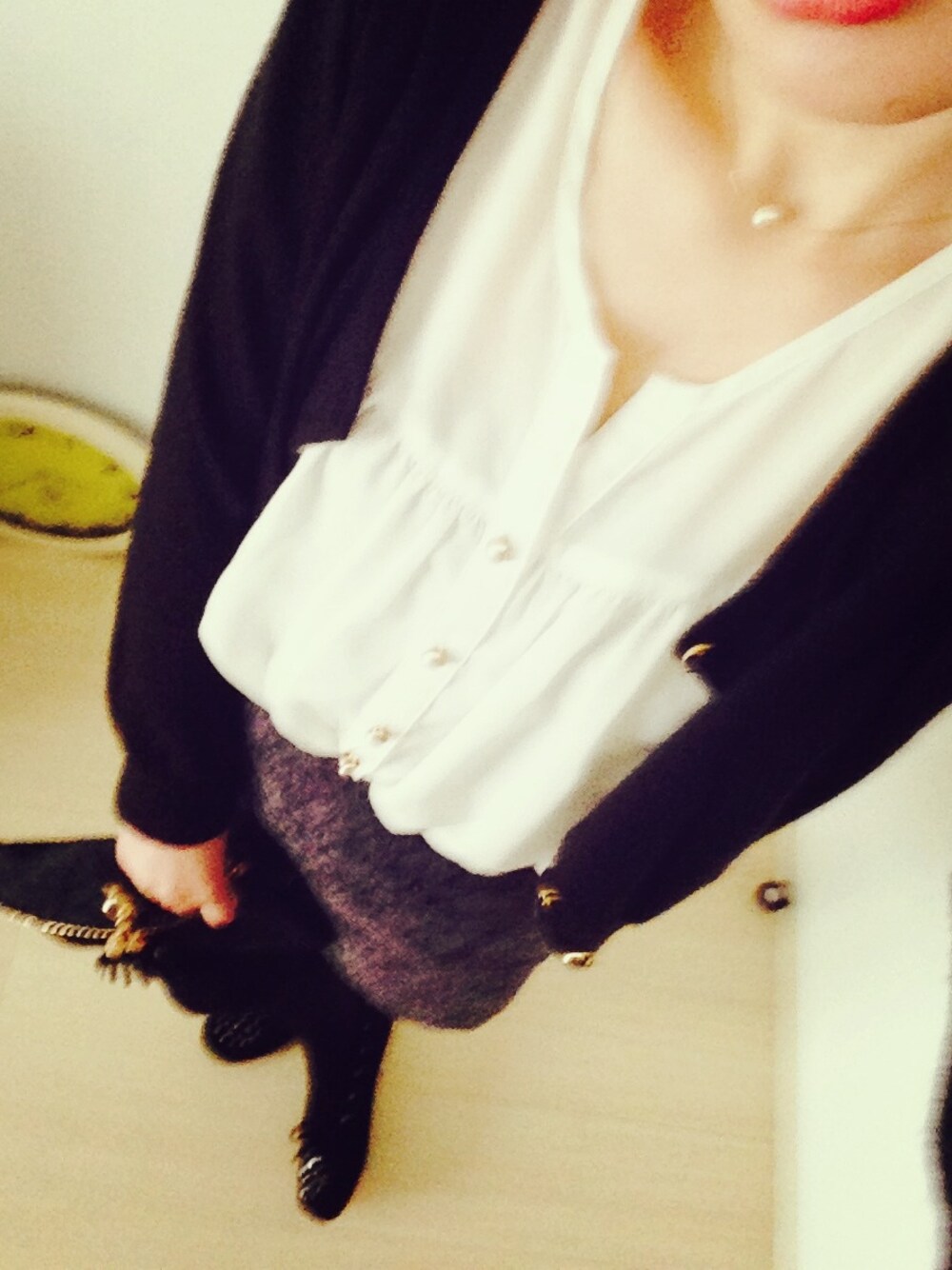 これから送別会。夜はまだまだ寒いから厚手のコートで(๑′ᴗ‵๑) グレーのリボンにグレーのコートがお気に入り❤︎ トップス…CROON A SONG カーディガン…31Sond de mode♡ スカート…kuskus