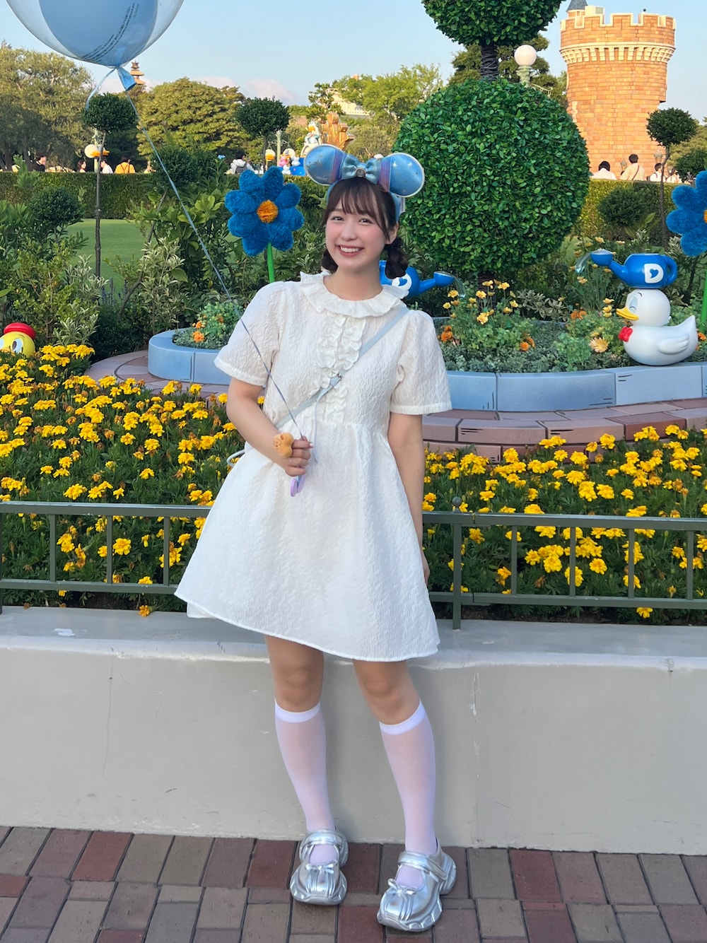 ホワイトコーデにカチューシャ、バッグ、風船は水色で爽やかで可愛いコーデ🥣🪽