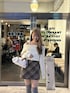 オフショルが可愛いホワイトニットと チェックのAラインスカート合わせがお気に入り♡