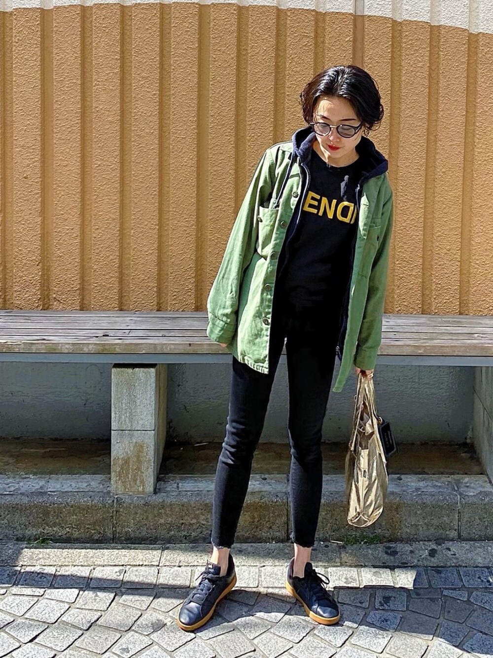 閲覧ありがとうございます😌 メタリックバッグ! 持つだけでテンション上がります🥑 本日も動きやすい格好🏃♂️