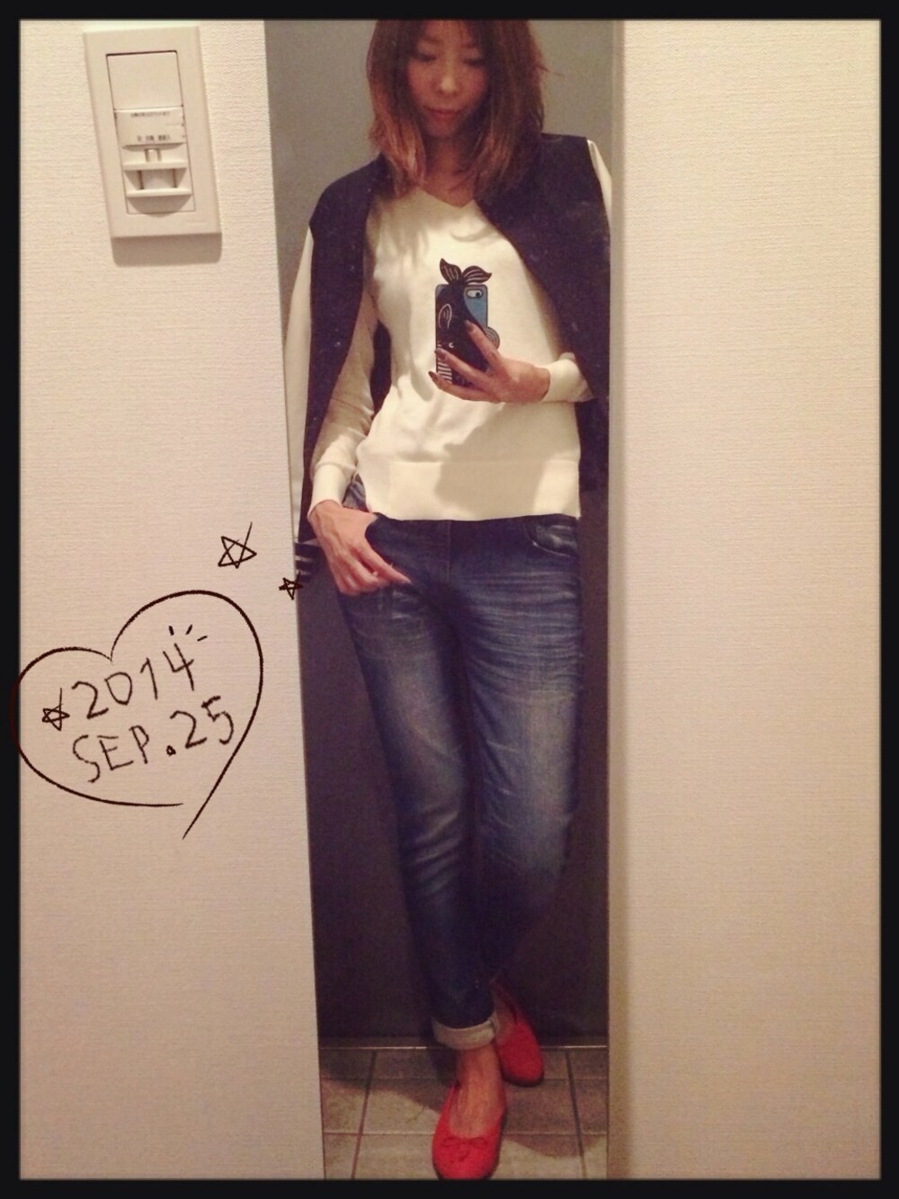 mayukickのスタジャン「【大人気のクリームカラー再生産決定!】コンパクトスタジャン」を使ったコーディネート