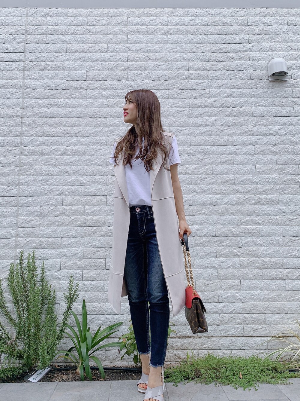 デニム×白tシャツコーデ シンプルだからこそ好き☺︎☺︎ zaraのスウェード生地のベストアウター これからの秋口にもぴったり Instagram⭐︎ @_ima.u