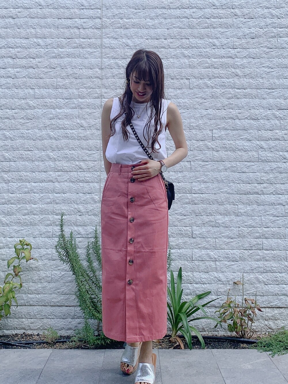 プチプラでカジュアルコーデ guで300円でgetしたタイトスカート 写真よりもう少し淡いピンクだから 子供っぽくならずに着れるかな☺︎ Instagram⭐︎ @_ima.u
