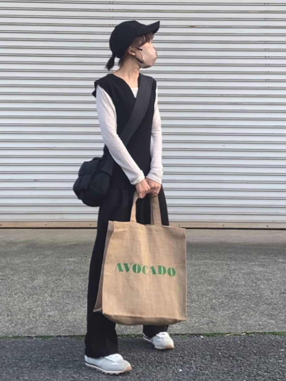 UNIQLO×マメクロコラボの 3Dノースリーブセーター❤︎ 販売中のスラックスとセットアップ風に♬ ロゴトートに流行りのgreen挿し色🌿