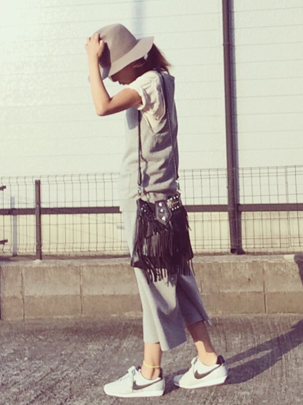 通勤ワントーンコーデ。 ニットベストとニットガウチョで セットアップ風にしてみました。 珍しくTシャツをレイヤード(^^) 流行りに乗ってみました!笑 大好きなグレーコーデ♡♡