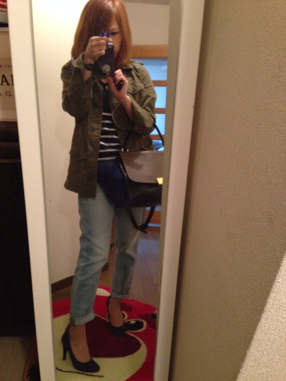 ボーイフレンドデニムでカジュアルだけど、小物は女らしく(´・_・`)
