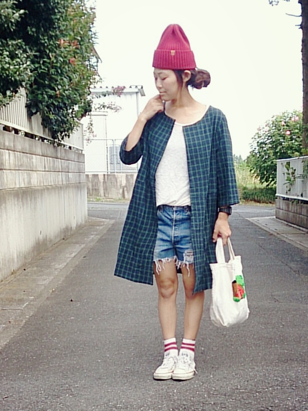 *新学期開始* 今日から新学期!! なのに雨~w 職場までバスでいかないと(××) そんな今日は8月12日に投稿した 赤チェックの色違いバージョン☆ 気に入ったから同じ形のものを 作ったとゆう。笑 あとニット帽解禁~☆ この写真は 風強くて髪の毛が顔にわしゃわしゃくるので 早くとりんしゃい!!・・・の図ですw ではいって来ます^^*