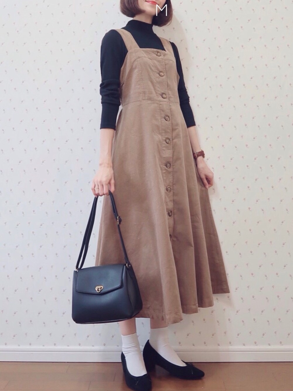 【👗:w closet】 コーデュロイでほっこり暖かみのあるジャンパースカート🍁ウエスト切替、多めのフレアが女性らしい! 【💼:しまむら】 しまコレで販売中のコラボバッグです、ブラックを合わせました✨ Instagram: @gijigijigijiii Twitter : @gijipom