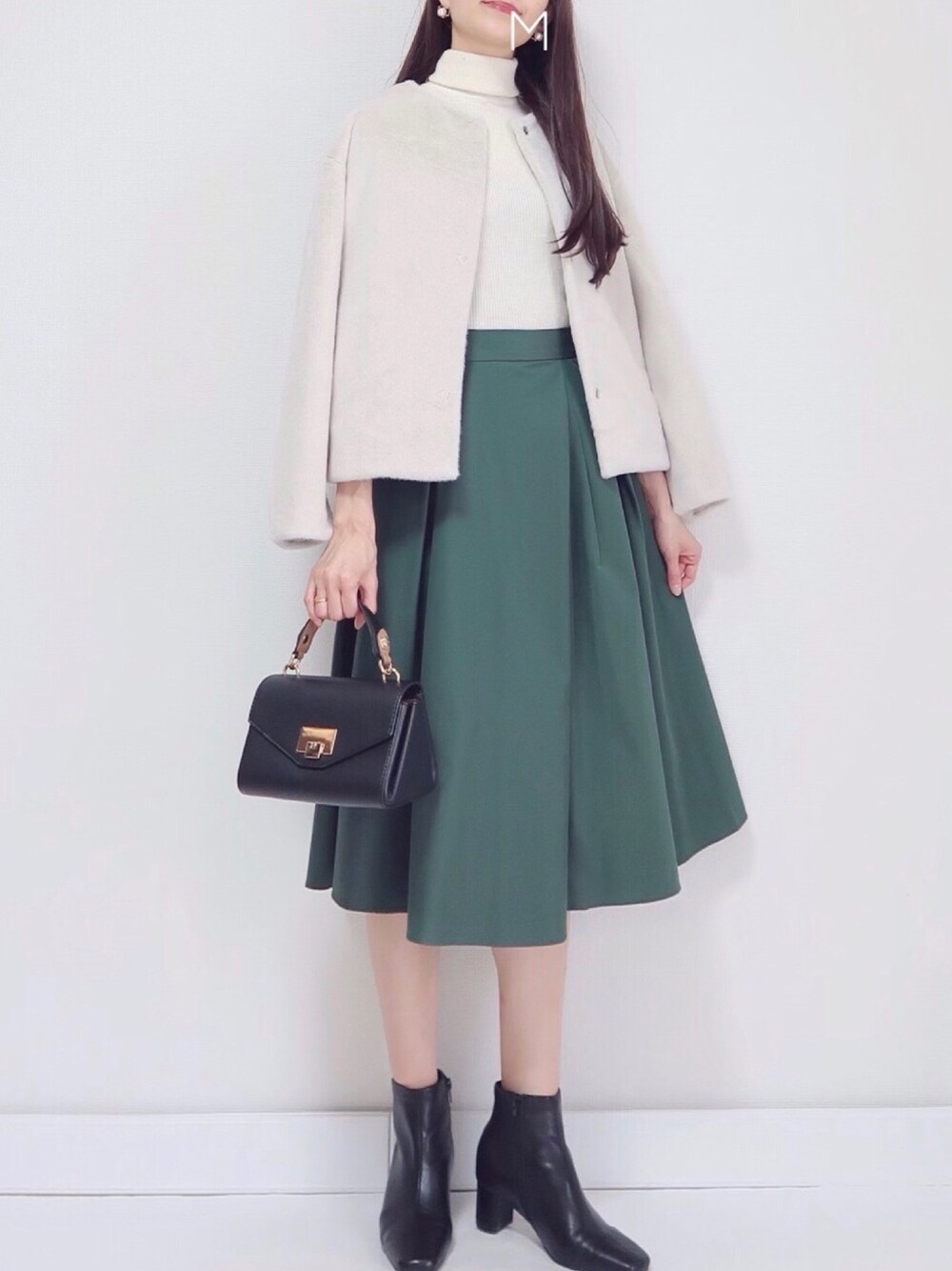 最近フレアスカートコーデが少なめなので👗 スカートは色味がとても気に入りました💕💕 タートルネック、アウターはUNIQLOです✨ ig ▶︎ gijigijigijiii