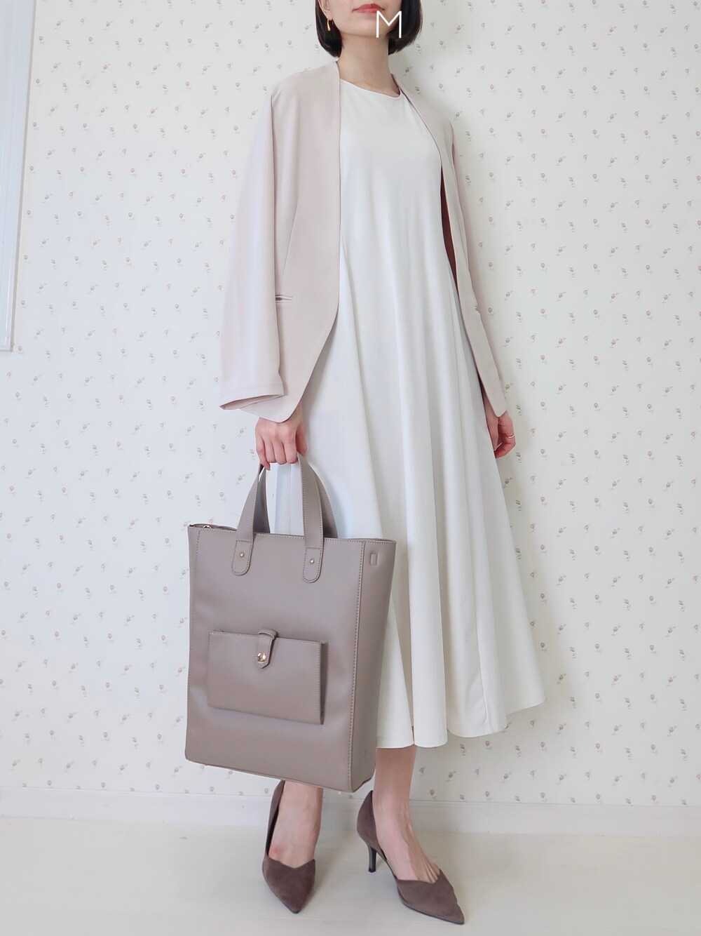 MAYUKOのノーカラージャケット「ジョーゼットノーカラーストレッチジャケット」を使ったコーディネート