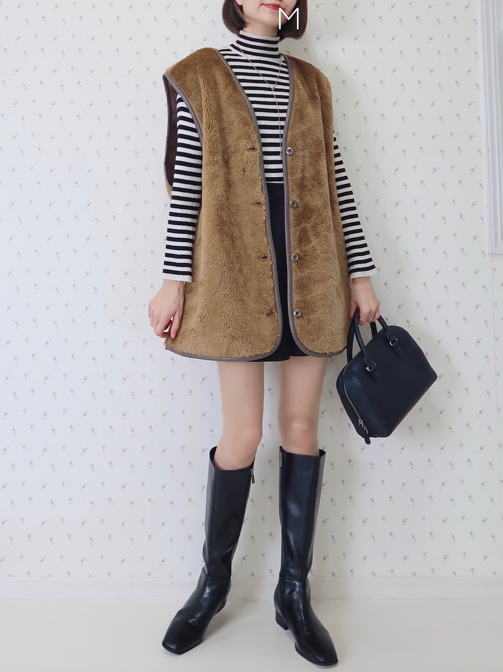 MAYUKOのベスト「《Javaジャバコラボ》シーズンムード高まる。2wayリバーシブルファー×スエード オーバーサイズ ベスト」を使ったコーディネート