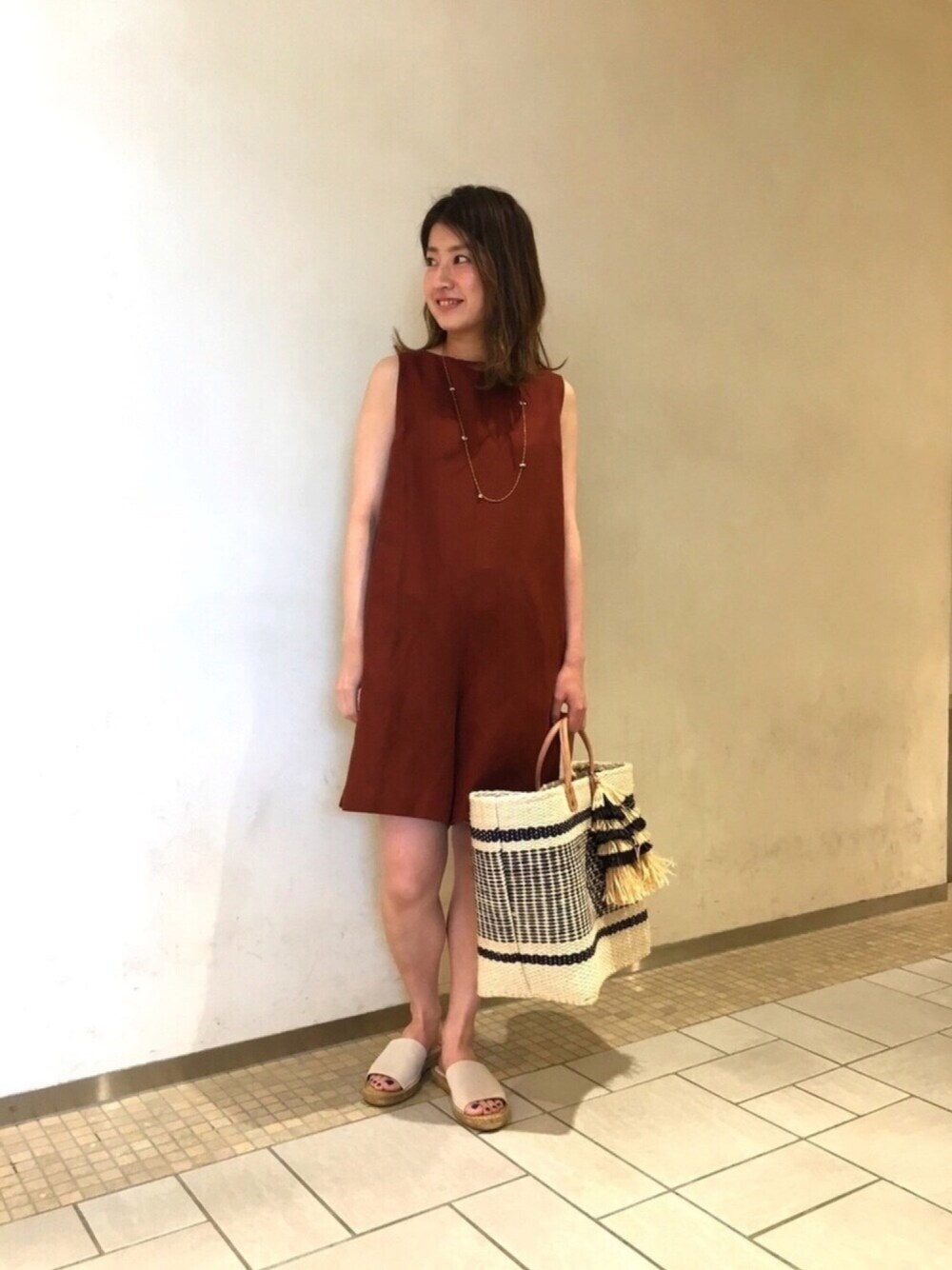 リネン素材のオールインワンです!色違いでネイビーもございます。足元はサンダルがオススメです!!