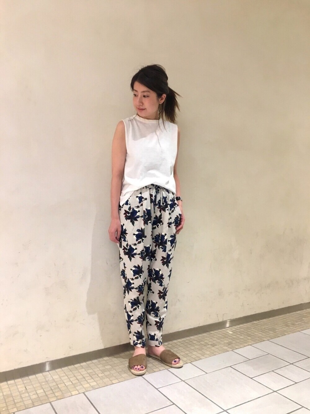 リネンとレーヨン素材の着心地の良いイージーパンツです!シンプルな合わせでも、花柄が今年っぽく見せてくれます!!