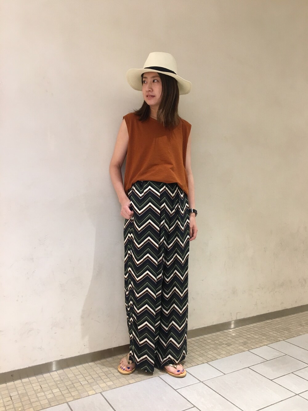 幾何学柄のワイドパンツが入荷しています!リネントップスやTシャツなど合わせるトップスで雰囲気を変えていただけます!!