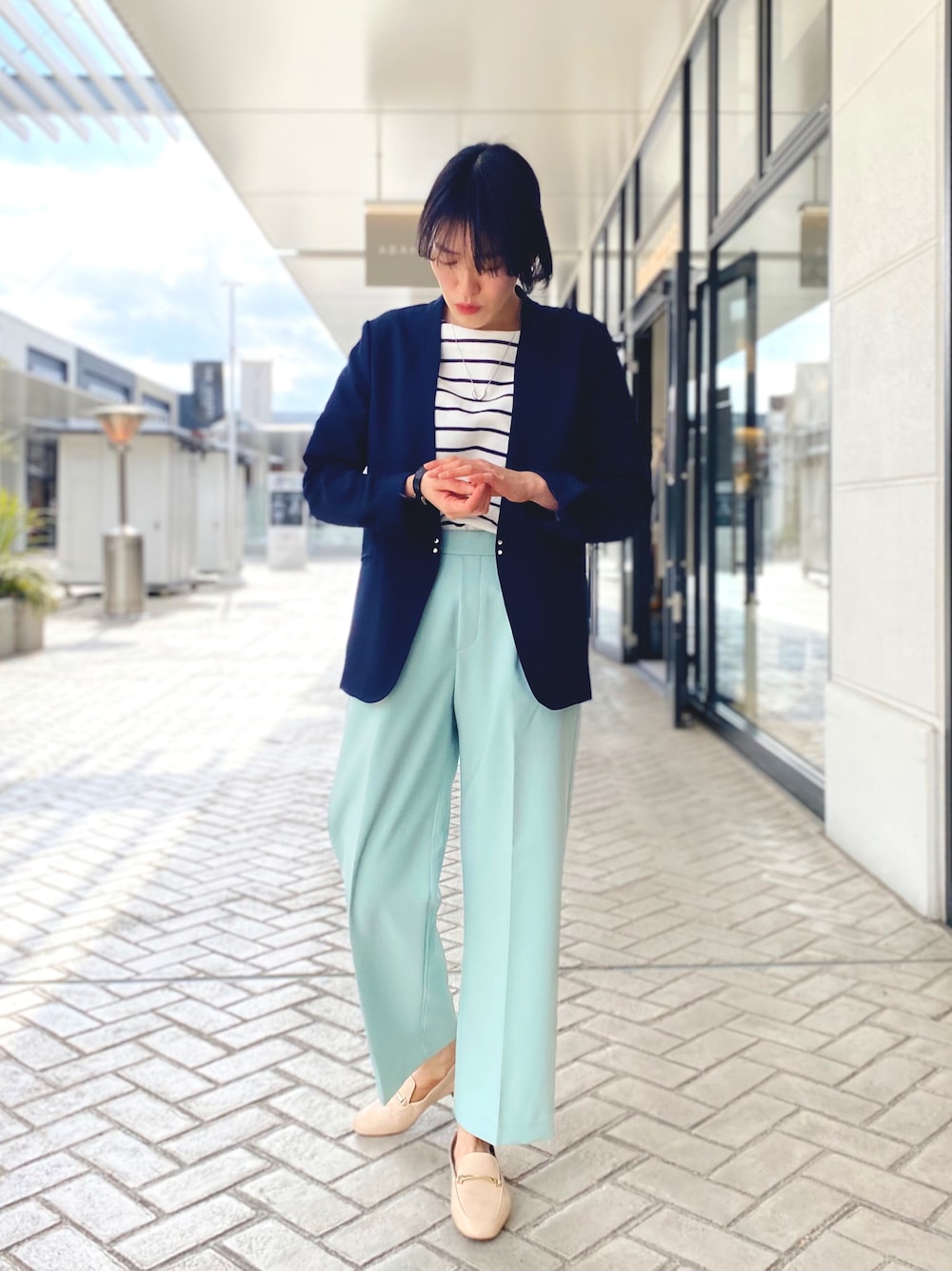 セージグリーン色のセミワイドパンツで春コーデ☘️