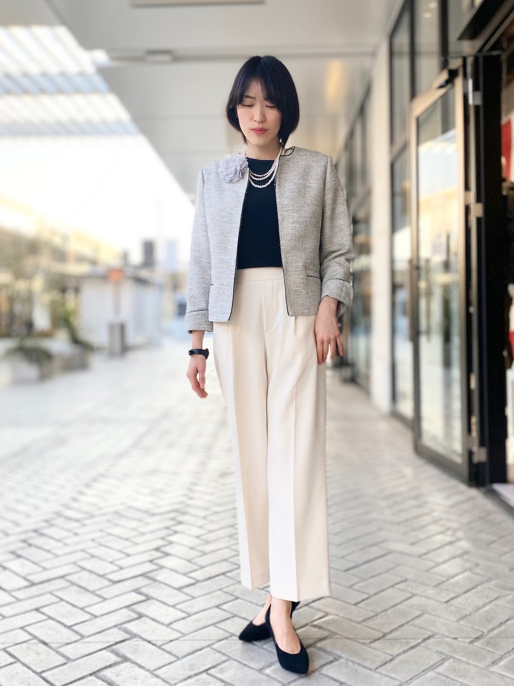セレモニーの時活躍するツイードジャケット✨ パンツは普段着で使いも出来る優秀感嘆パンツ‼︎