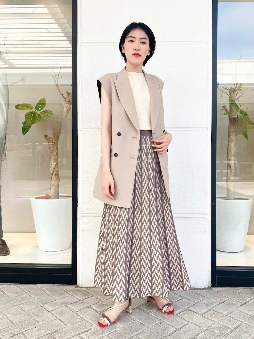 ✌︎のワンピース「ノースリーブ&ジャガードスカートセットアップ」を使ったコーディネート