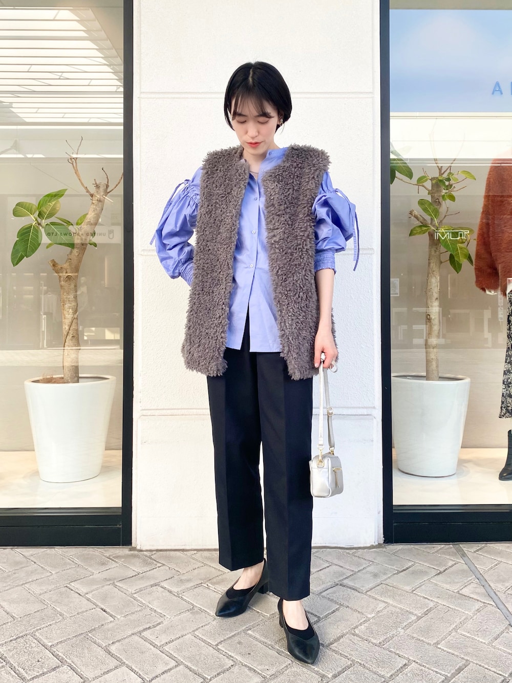 袖ボリュームシャツ✖︎ボアベスト は可愛い❤️
