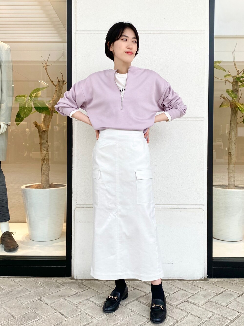 【ハーフジップ×カーゴスカートコーデ】 ラベンダー色×シルバー色合わせは春っぽくて可愛くてお気に入りの組み合わせです♡_♡