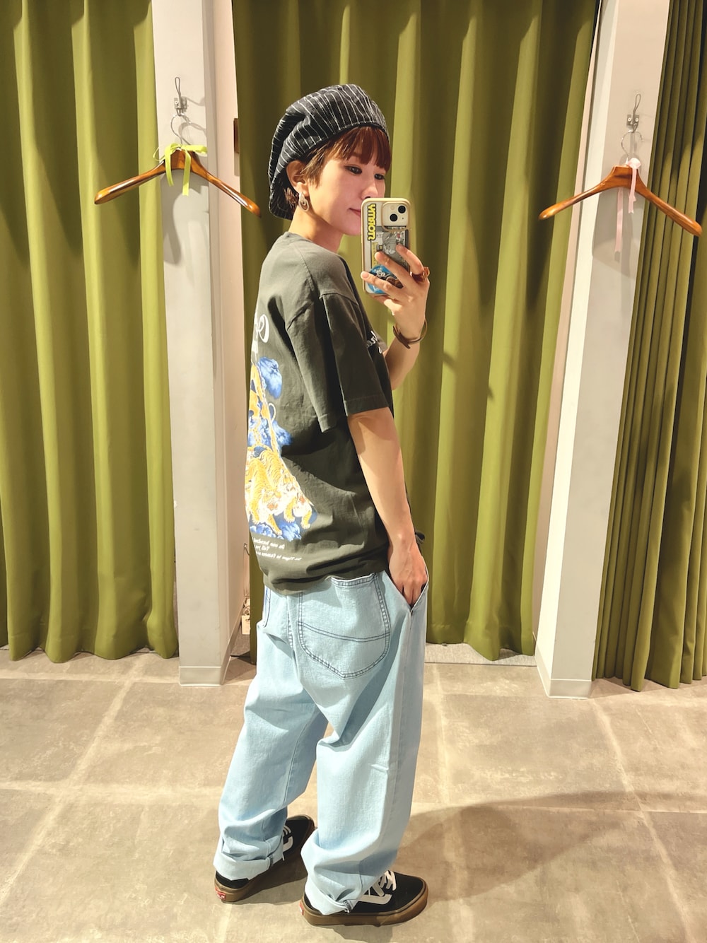 まゆみんのデニムパンツ「Lee/リー ワンサイズでXS~XXLまでカバーする Fleeasy フリージー カラーワークパンツ/オーバーサイズ ストレッチ イージーパンツ/ワイドテーパードパンツ/バギーパンツ」を使ったコーディネート