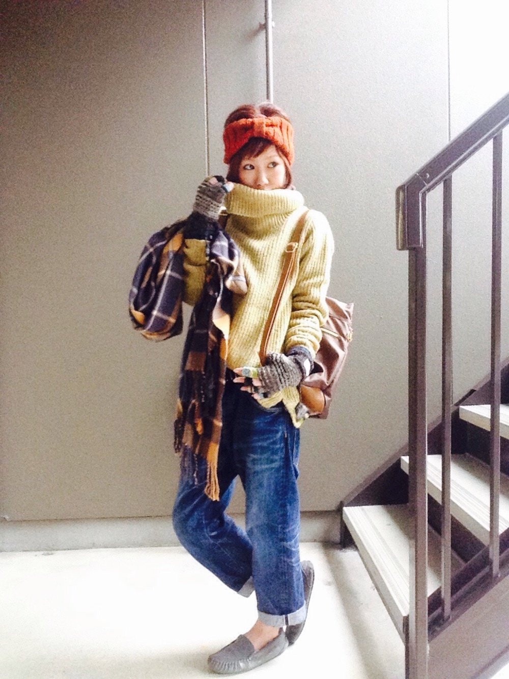 まゆみんの手袋「BYBC Northern Store House ウールジャカード フィンガーレスグローブ」を使ったコーディネート