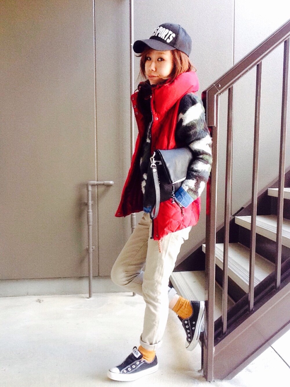 ダウンベスト セレクトショップ インナーのデニムシャツ チノパン UNIQLO 皆さんこんにちは〜〜🙆❤️ 赤がかわいーと思って衝動買いしたベストは一歩間違えたら本当にダサい人になるから時間がある時にちゃんとコーデしないとよく失敗する笑。 首元のボリュームがすごく好きなのに横向くたびに首元のボリューム襟にチュッチュッなる😭😂 これ着るときは口元はなんも塗らない日に。 そんで今月は大好きな人達が誕生日すごくおおいのね!今月お誕生日の皆さんおめでとう〜♥️ 昨日は久しぶりに親友ちゃんと呑みとカラオケにー。 ホルモンが美味しいとかで半泣きになってた。 絶対酔ってた。 カラオケで私は林檎ちゃん、中島美嘉、シャカラビ、ジュディマリの繰り返しで、親友ちゃんはあゆ、倖田來未、JUJUの繰り返しで私達歌の趣味合わないよねって半泣きだった。 絶対酔ってた。 帰りタクシーで2人とも揺れてた。無意味に。 絶対酔ってた。 そんな楽しい日でした♥️
