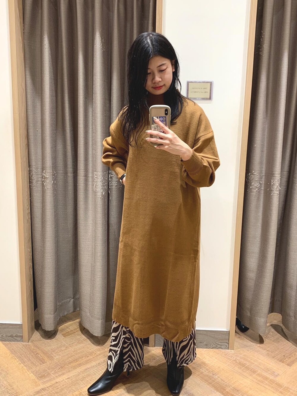 1枚でもサラッと着れるニットワンピをあえて新鮮なゼブラ柄のパンツと一緒に🦓 アニマル柄に抵抗がある方でもレイヤードしていただくと着やすくなります☺️