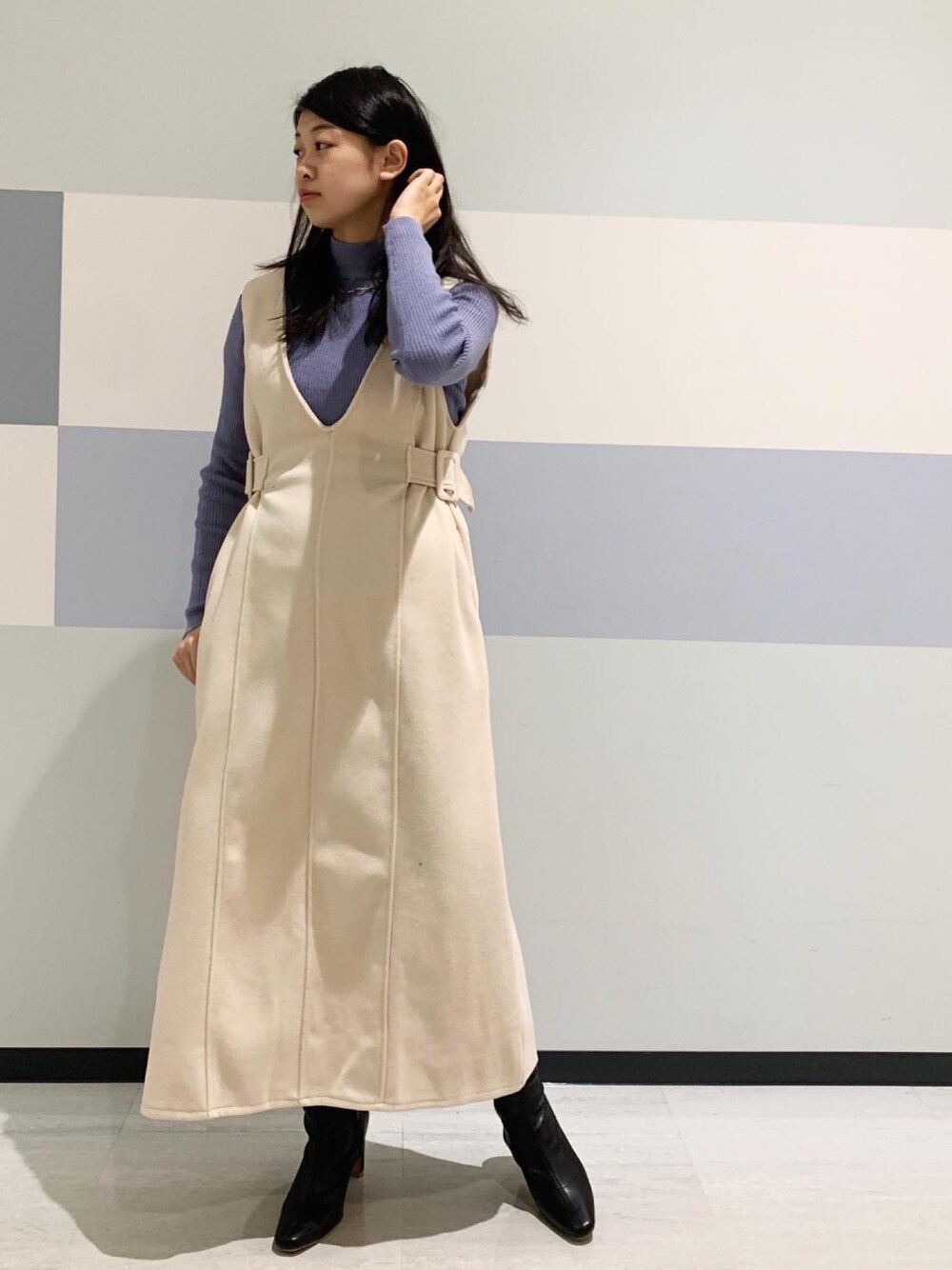 肌触りが柔らかなハイネックニットにウールライクなジャンスカで少しキレイめに🦙 ジャンスカは暖かくて私みたいな寒がりさんにはぴったりです🥰笑