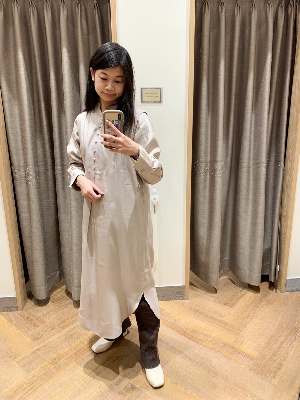 Mayumi(prose verse 福岡マリノアシティ店)のワンピース「【品のある光沢感】オーロラツイル肩タックシャツワンピース」を使ったコーディネート