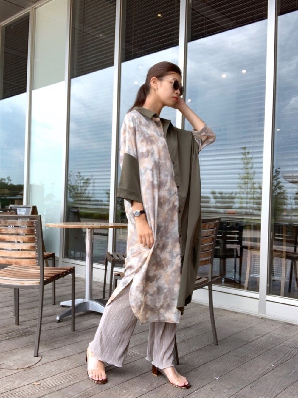 さらっと着れるシャツワンピースはポケットついてて羽織にできちゃう優れもの◎ サングラスも合わせてクールに🕶