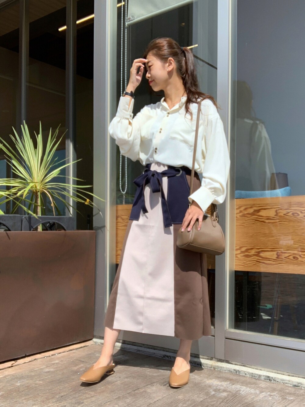 きれいめな秋のデートコーデ♡ 人とかぶりにくい配色スカートはリボンがポイントに🎀